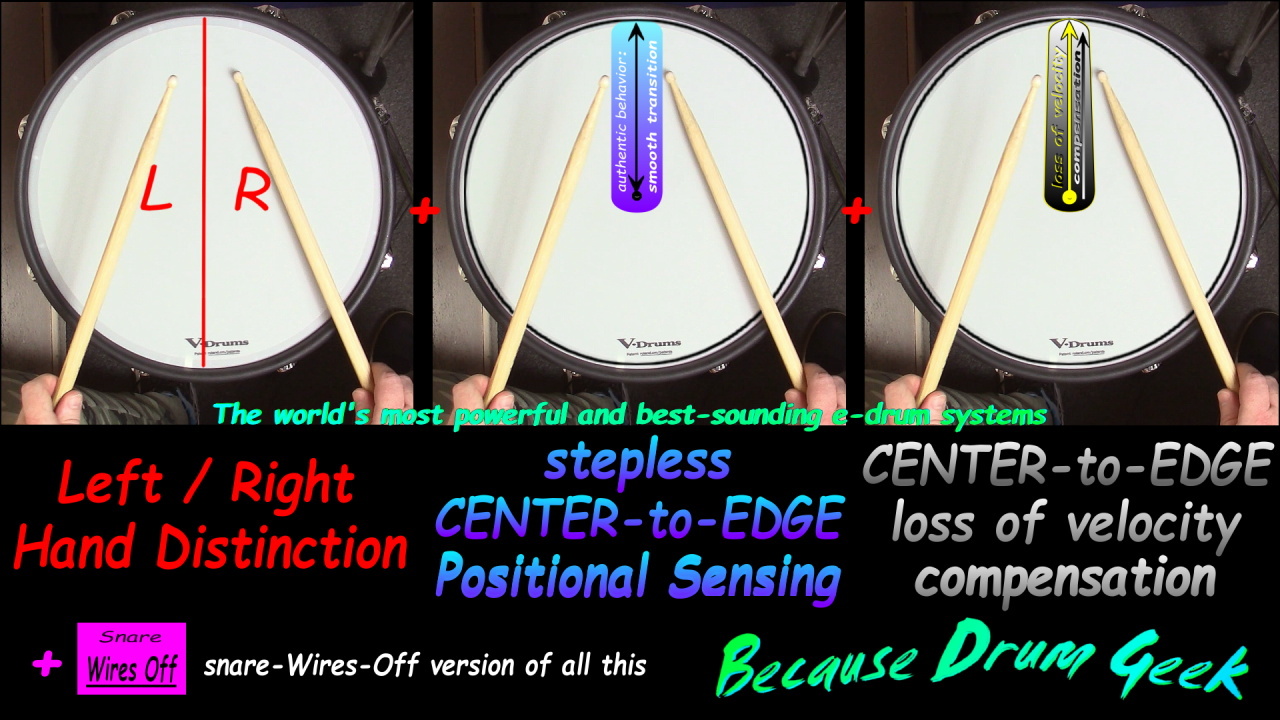 What the video also shows nicely (when only the right half is played) is the one-dimensionality of all non-L/R eSnare systems.