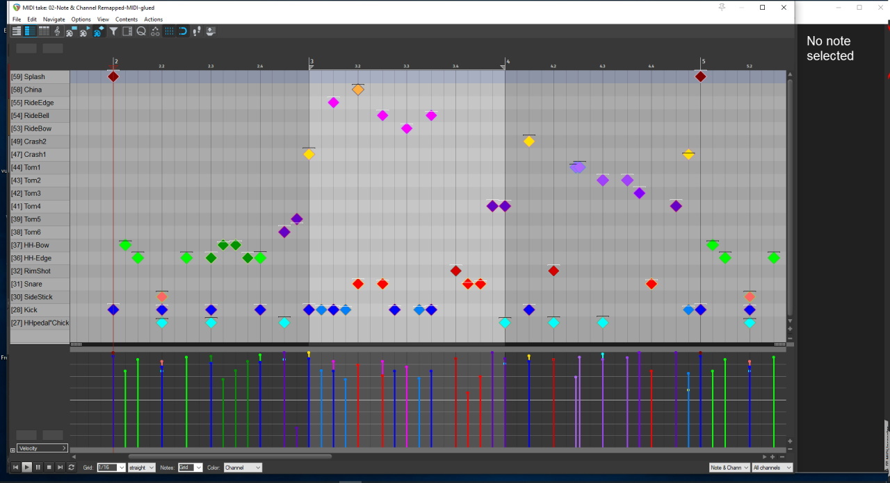 + note inspector as a docked window = selected note shows note number and velocity ((!) very important and a no-go when not available, as is the case by default) ❗